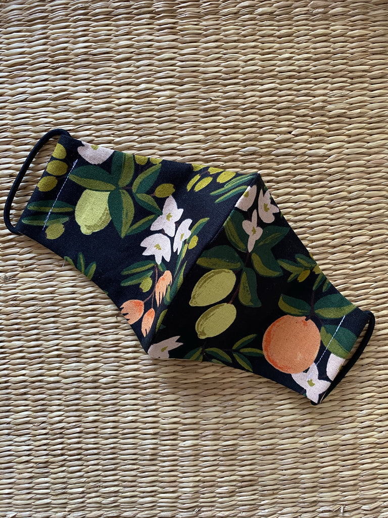 Re-usable Cotton Face Mask - Adult Size in Citrus Floral Black