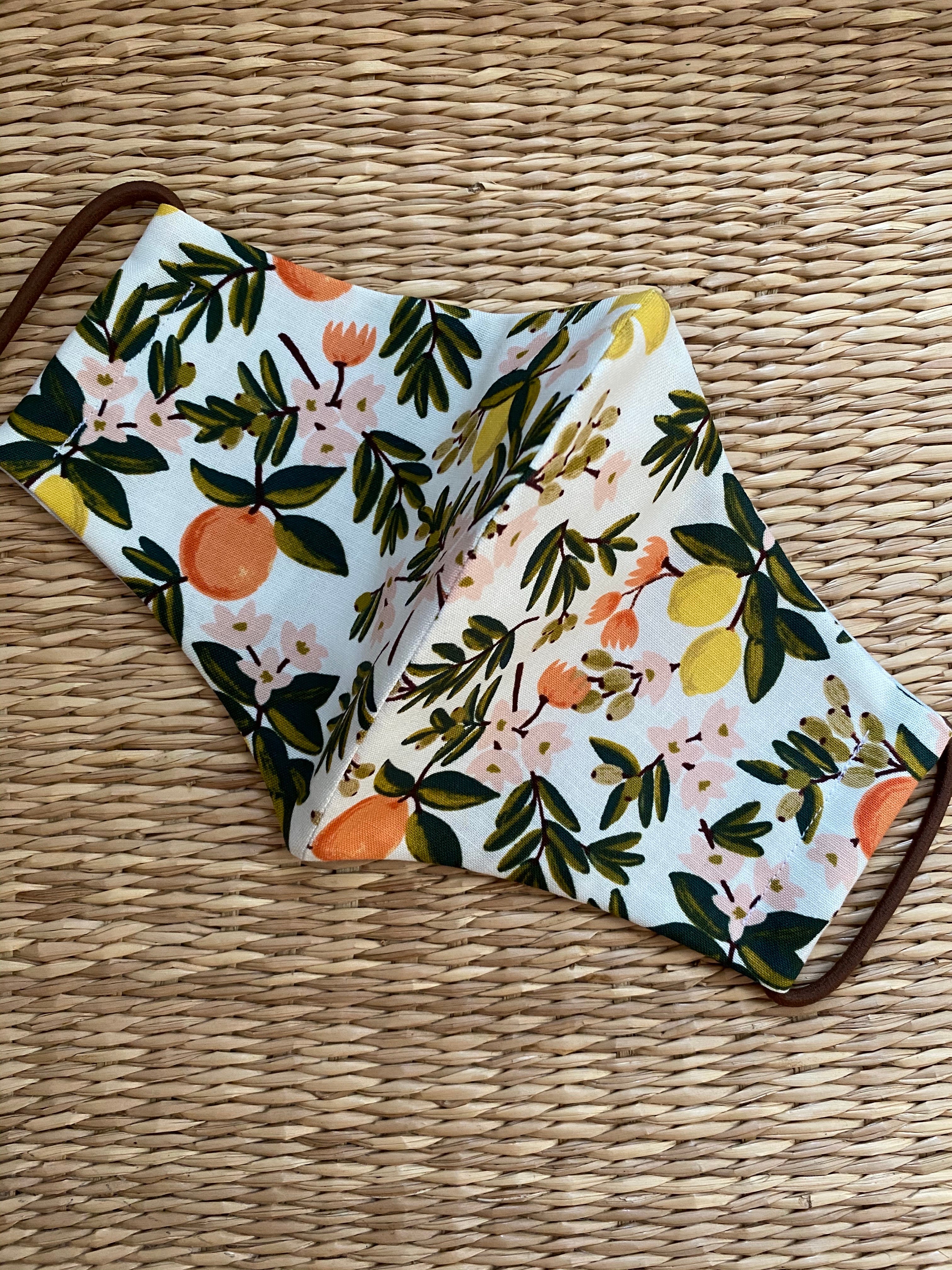 Re-usable Cotton Face Mask - Adult Size in a Rifle Paper Co. print - Citrus floral cream.