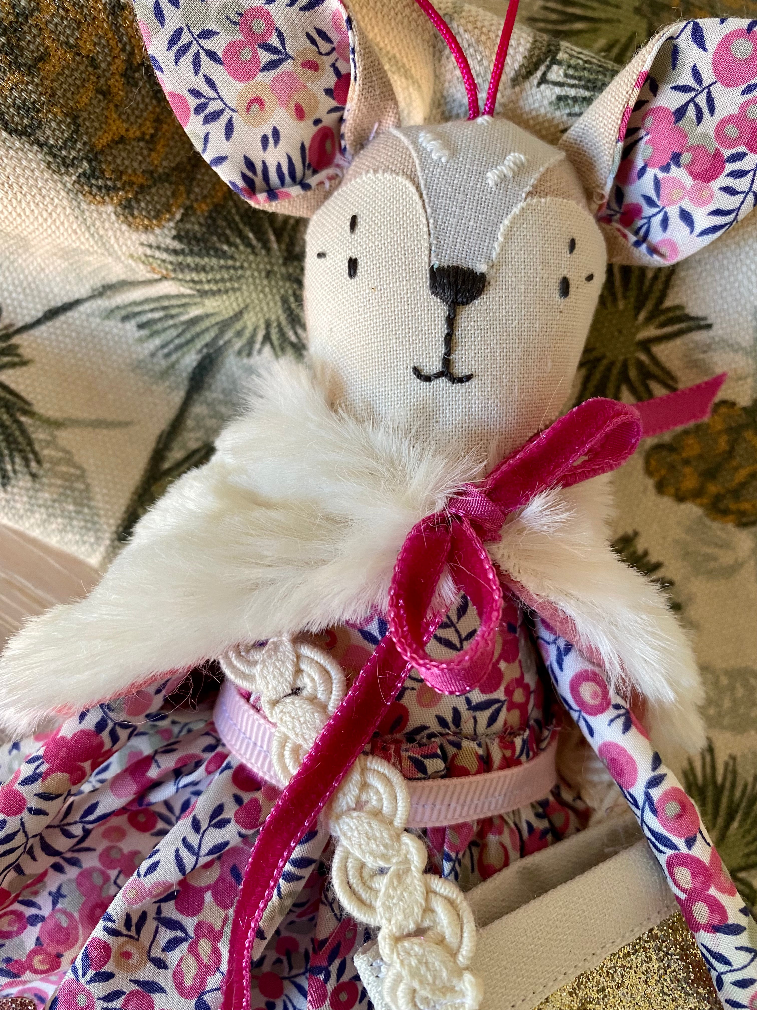 This Wish upon a Star TillyBob decoration is a perfect festive addition and I’m thrilled to be back making again! Following the hugely popular Angel decoration, these beautiful  friends each bring their own little star to wish upon as well as a bag to keep the wish safe. Each decoration measures approx 20cm tall (excluding the ears!), is complete with a set of handmade accessories. Each one is unique, completely handmade by myself, and wears a Liberty Print skirt, cape and bag and holds their magic star.